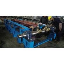 通過分析研究上述問題,結(jié)合國內(nèi)外給料機(jī)使用情況,重新設(shè)計(jì)制作了一臺(tái)新型給料機(jī),主要特點(diǎn)是:采用板式給料機(jī)連續(xù)給料;板式給料機(jī)料板采用雙圓弧、節(jié)點(diǎn)重合的方式,解決了漏料問題;板式給料機(jī)安裝角度為18°,可使物料緩慢分散跌落到皮帶機(jī)上;撥料棍采用逆物料方向旋轉(zhuǎn),以控制物料層的厚度;料斗設(shè)計(jì)采用漸開式,解決了膨料問題;電機(jī)采用變頻控制,可控制出料速度。經(jīng)過三個(gè)多月的的現(xiàn)場使用,證明能夠完成勻料,效果較好。