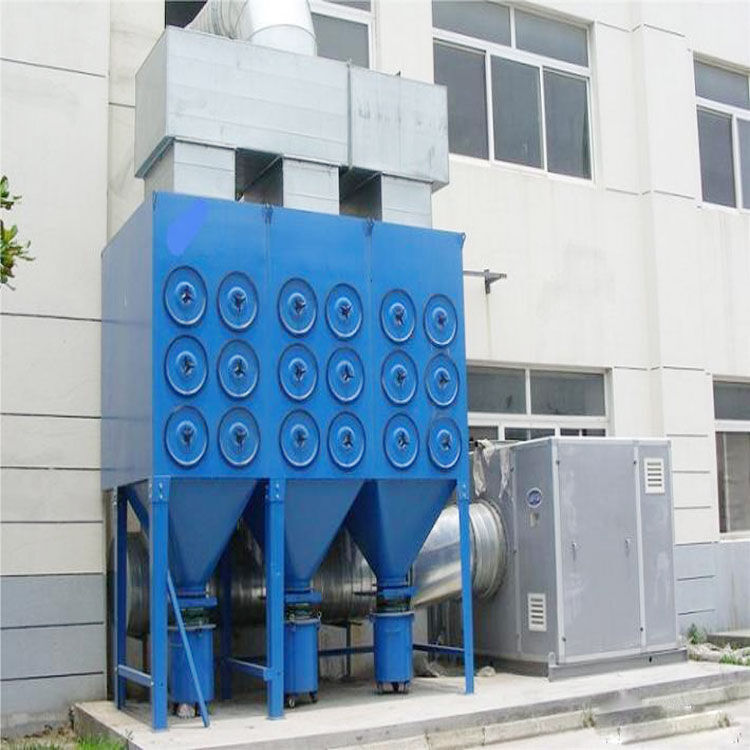 在正常運行時,如:重力、慣性力、碰撞、靜電吸附,篩濾作用等。含塵空氣由頂部入口進入濾筒式除塵器,較大的粉塵顆粒因截面積增大,風速下降而提高直接沉降,較小的煙塵粉塵顆粒通過濾筒。粉塵被捕集在過濾筒外邊,清潔空氣則經(jīng)由濾筒中心進入清潔空氣室,再經(jīng)出口由引風機排出。隨著過濾不斷進行,濾筒表面的煙塵粉塵越積越多,阻力不斷升高,及至濾筒清灰時,固態(tài)控制將操縱電磁閥以打開一個空氣隔膜閥,于是高壓空氣便直接沖入所選濾筒中心,把捕集在濾件表面上的粉塵吹掃一清,使濾筒再生。粉塵則隨主氣流所趨,并在重力的作用下向下落入塵斗中。周而復(fù)始,連續(xù)過濾,使設(shè)備連續(xù)進行得到保障。