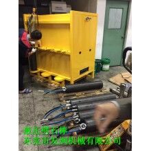 1向油站加入抗磨液壓油,需加滿。液壓油站下方有游標,參照游標即可。