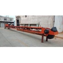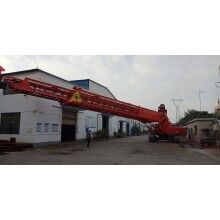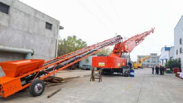 我公司生產(chǎn)的可移動式混凝土運輸、澆筑設備——自行帶式混凝土布料機,小時澆筑強度可達270m3。為了解決混凝土布料機的供料問題,自行研制了可移動式上料平臺。