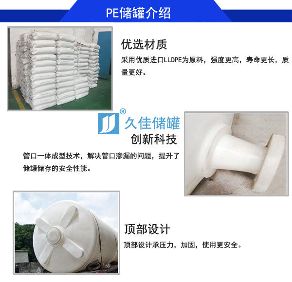 東莞久佳PE材質(zhì)減水劑儲罐特點:滾塑一次成型的減水劑儲罐采用進口LLDPE原料生產(chǎn)的PE減水劑儲罐是一種耐酸堿防腐蝕大型塑膠容器,可用于儲存各種聚羧酸母液、減水劑、混凝土外加劑、水泥添加劑;目前已經(jīng)廣泛用于聚羧酸減水劑生產(chǎn)合成/外加劑復配;聚羧酸減水劑合成工藝配置的純水罐、去離子水水罐、原水罐、母液罐、儲料罐、雙氧水儲罐、液堿罐、原料罐、計量罐、滴加罐、配料罐、復配罐、成品儲罐都可以采用這種PE材質(zhì)塑料儲罐。