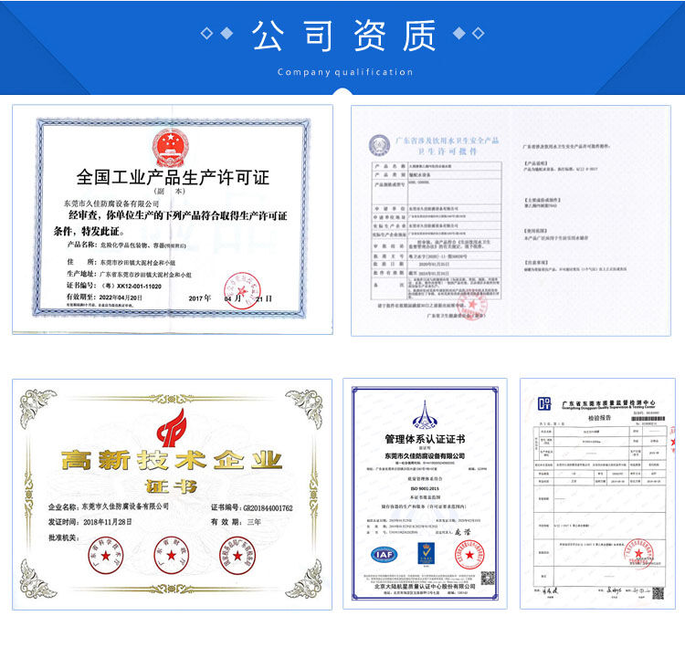 東莞市久佳防腐設備有限公司是國內前沿的防腐環(huán)保設備制造商之一,竭誠以專業(yè)的防腐技術為各類石化、環(huán)保、釀造、醫(yī)藥、食品等行業(yè)提供防腐儲存運輸設備。公司擁有各類先進的生產設備與檢測儀器。加工工藝成熟,檢測手段先進,經過多年不斷創(chuàng)新努力,集生產、銷售各類鋼襯塑儲罐、鋼襯塑反應釜、防腐儲罐、全塑儲罐、PE儲罐、離子交換柱等系列設備于一體。設備品質得到廣大合作企業(yè)高度好評.設備技術合作開發(fā)愈加密切。