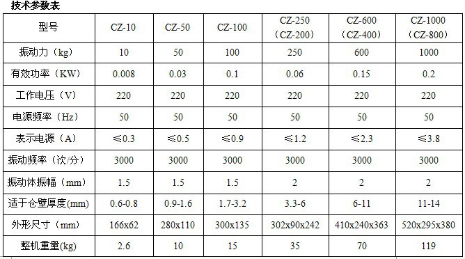 (4)CZ倉壁振動器不適用于有防爆要求的場合。