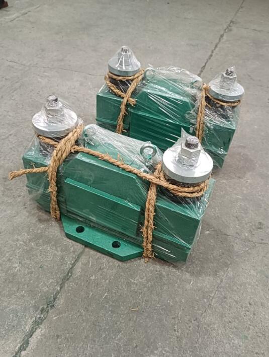 ⑼ 斜溜槽(見圖12):對于厚度小于3-3.5毫米的料槽,若在中心線靠下一點的部位安裝,便會在料槽下端產生強烈的振動。用于圓筒形料槽時,可先把振動器裝在平板上,然后用U型螺栓固定在管子上。安裝單臺振動器時,一般應裝在溜槽下端40%的位置上。安裝多臺時,應***同步運行,*下部的一臺應裝在距離溜槽端部45-60厘米處。