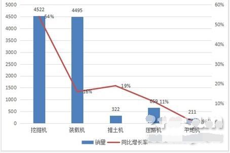 25家納入統(tǒng)計(jì)的挖掘機(jī)企業(yè)累計(jì)銷售挖掘機(jī)4500多臺(tái),同比大漲54%,在連續(xù)四個(gè)月同比高達(dá)70%的高速增長(zhǎng)之后,上升勢(shì)頭依然強(qiáng)勁。
