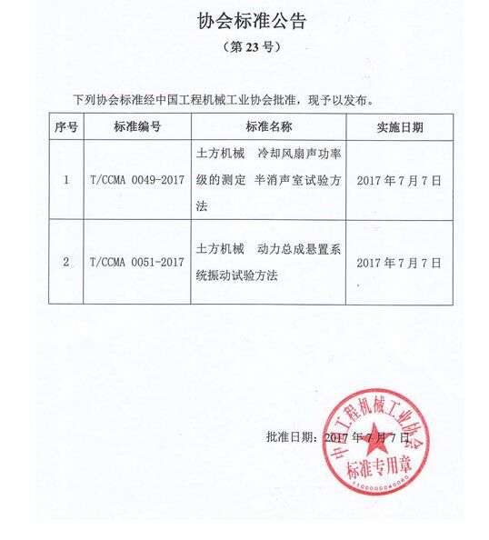 中國(guó)工程機(jī)械工業(yè)協(xié)會(huì)標(biāo)準(zhǔn)公告(第23號(hào))