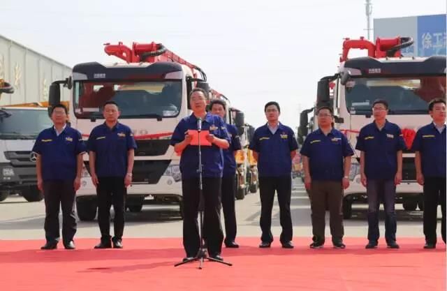 半年時(shí)間內(nèi),這已是徐工施維英第7次出口訂單批量發(fā)車儀式。儀式現(xiàn)場(chǎng)人頭攢動(dòng)、彩旗飄揚(yáng)、禮炮齊鳴, 一臺(tái)臺(tái)披戴紅花的混凝土機(jī)械設(shè)備就像即將出征的戰(zhàn)士,整齊列隊(duì),等待出征前的檢閱。