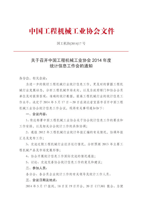國工機(jī)協(xié)2014年17號文協(xié)會統(tǒng)計(jì)工作會議通知