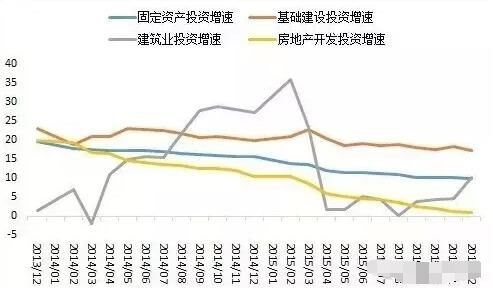 2015年,全國(guó)固定資產(chǎn)投資(不含農(nóng)戶(hù))551590億元,比上年名義增長(zhǎng)10%(扣除價(jià)格因素,實(shí)際增長(zhǎng)12%),增速比1-11月份回落0.2個(gè)百分點(diǎn)。從環(huán)比速度看,12月份固定資產(chǎn)投資(不含農(nóng)戶(hù))增長(zhǎng)0.68%。建筑業(yè)固定資產(chǎn)投資總額4895億元,同比增長(zhǎng)10.2%,增速較1-11月提高了5.4個(gè)百分點(diǎn)。今年以來(lái),制造業(yè)投資大勢(shì)已去,房地產(chǎn)投資降至歷史低點(diǎn)且尚未見(jiàn)底。由于基建投資具有逆周期特性且保持快速增長(zhǎng),穩(wěn)增長(zhǎng)寄希望于基建投資托底。發(fā)改委更是密集批復(fù)基建項(xiàng)目助力穩(wěn)增長(zhǎng)?;A(chǔ)設(shè)施投資(不含電力)101271億元,比上年增長(zhǎng)17.2%,增速比1-11月份回落1個(gè)百分點(diǎn)。其中,水利管理業(yè)投資增長(zhǎng)21%,增速回落2.3個(gè)百分點(diǎn);公共設(shè)施管理業(yè)投資增長(zhǎng)20.2%,增速回落0.3個(gè)百分點(diǎn);道路運(yùn)輸業(yè)投資增長(zhǎng)16.7%,增速回落0.8個(gè)百分點(diǎn);鐵路運(yùn)輸業(yè)投資增長(zhǎng)0.6%,增速回落0.2個(gè)百分點(diǎn)。