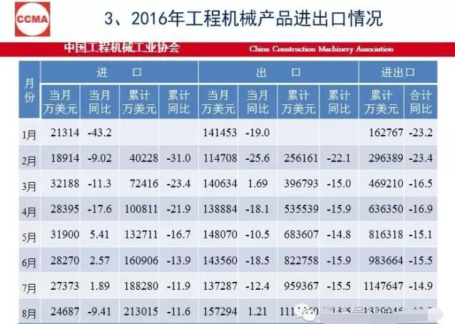 今年9月份挖掘機(jī)同比銷量增加71.4%,1到9月增長26.3%。出口還是在高位,但是還有13%左右的降幅。在裝備制造業(yè)里,尤其是機(jī)械行業(yè)里,我們還是比較好的,進(jìn)口的數(shù)是越來越少。